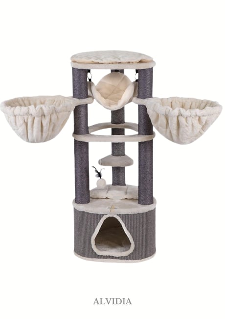 עם קומות מרובות, עמודי גרוד ומקומות מסתור, אלווידיה מתאים לכל היבטי השגרה היומית של החתול. החתולים יכולים לגרד, לטפס ולהתבודד במקומות שונים, תוך סיפוק אינסטינקטים טבעיים ושמירה על מעורבותם. העיצוב הזה מעודד משחק פעיל ומספק מקום נעים למנוחה, מה שמספק תוספת ורסטילית לחיי החתול שלכם. (מכולת לחיות מחמד)
