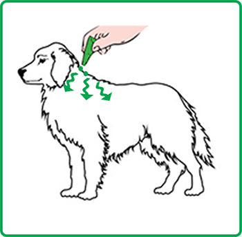 יש להפריד את הפרווה עד לחשיפת העור שבאזור שבין הכתפיים.יש להניח את קצה השפורפרת על העור וללחוץ אותה מספר פעמים על מנת לרוקן את כל התכולה ישירות על העור.