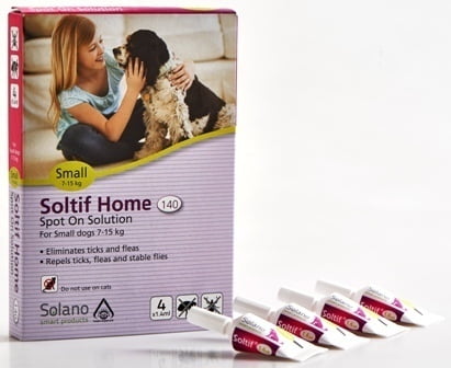 Soltif Home הוא המוצר הבטוח ביותר לשימוש בתוך הבית, בסביבת ילדים וחיות אחרות משום שמכיל מינימום כימיקלים ובעל מנגנון ספיגה מהיר אשר נותן פתרון לבעיית הפרעושים והקרציות. בזכות יעילות החומר ומהירות הספיגה, Soltif Home מגן על כלבך ממחלות המועברות על-ידי הטפילים בכך שאינו מאפשר לטפיל לעקוץ וקוטל אותו באופן מידי, על ידי מגע בלבד. Soltif Home מספק הגנה מרבית נגד פרעושים וקרציות כשעתיים אחרי הטיפול! אמפולת Soltif Home אפקטיבית בזכות שילוב חומרים חדשני אשר הטפילים טרם פיתחו נגדו עמידות. כל שפורפרת של 1.4 מ”ל מכילה בתוכה את החומרים הפעילים: דינוטפורן (Dinotefuran) – חומר פעיל מהדור החדש, קוטל פרעושים על ידי מגע בלבד ומעניק לכלבך את ההגנה המושלמת תוך זמן קצר. פלומטרין (Flumethrin) – חומר פעיל יעיל ובטוח, קוטל את הקרציות במהירות ואף דוחה אותם באמצעות תכונת ה”רגליים הבוערות”, הקרציות חשות צריבה ברגליהן ואינן מסוגלות להיצמד לכלבך. שילוב של שני החומרים מעניק לכלבך בנוסף, הגנה מרבית מפני יתושים וזבובים.