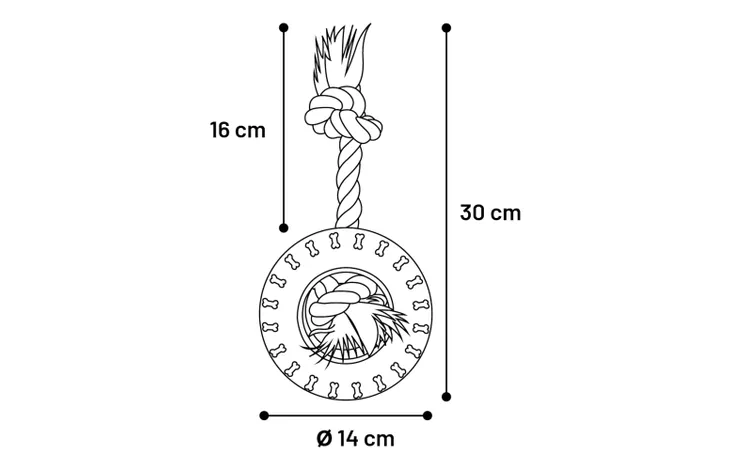 צעצוע לכלב חזק ועמיד. עשוי מגומי וחבל, אידיאלי למשיכה ומשחק חזק. חומר: גומי טבעי חזק במיוחד.