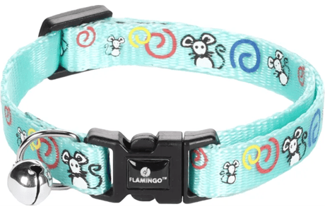 קולר לחתול בעיצוב טורקיז עם עכברים🐱, מתכוונן למידות של 20-35 ס”מ. קולר מעוצב ואיכותי שמביא שילוב מושלם של סגנון ונוחות לחתול שלך. כולל מנגנון בטיחות למניעת הסתבכות.