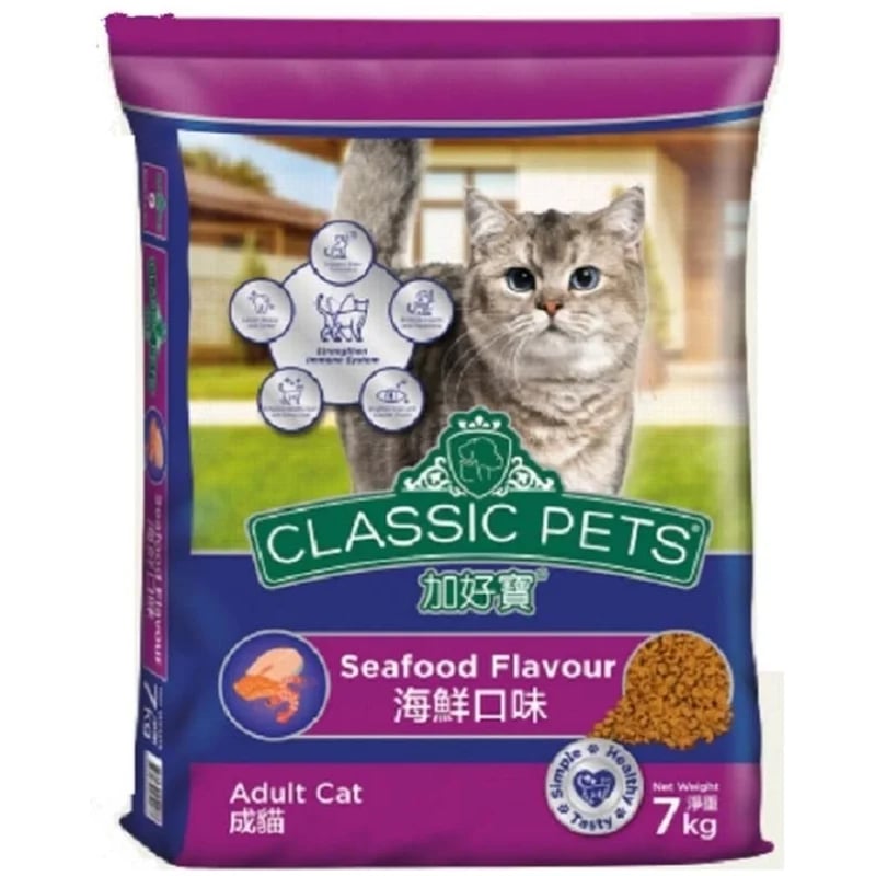 מזון יבש איכותי לחתולים בוגרים מבית קלסיק פטס (CLASSIC PETS) בטעם מאכלי ים. תערובת עשירה בחלבונים, ויטמינים ומינרלים חיוניים לבריאות החתול. מכיל דגים טריים ורכיבים טבעיים התורמים לפרווה בריאה ומבריקה. אריזה חסכונית של 7 ק”ג. מתאים לחתולים בוגרים מגיל שנה ומעלה. נוסחה מאוזנת לתזונה מלאה ובריאה.
