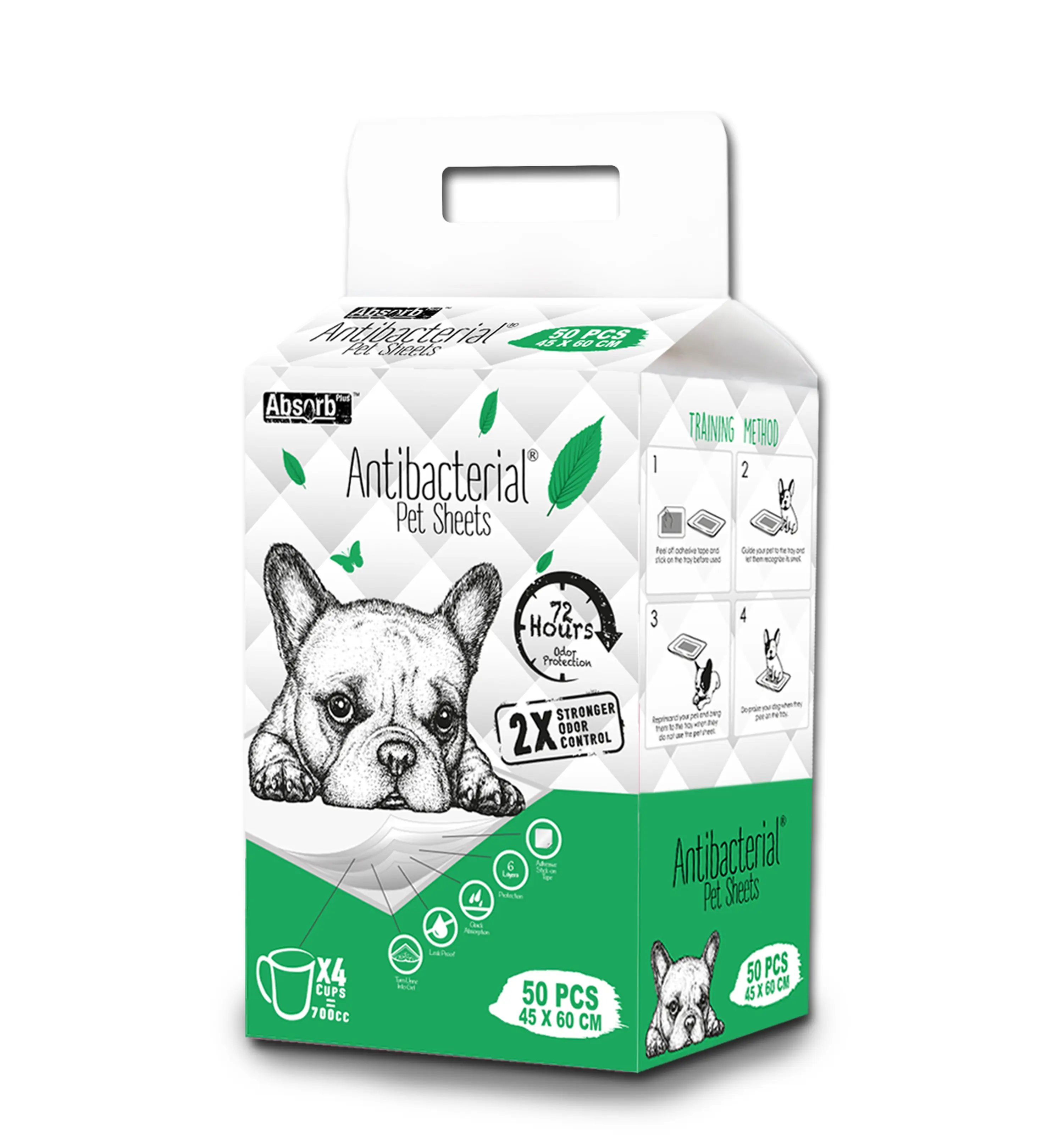 פדים אנטיבקטריאלים מארז של 50 יחידות, כל פד בעל 6 שכבות ספיגה ייחודיות הסופגות מיידית ללא נזילות או דליפות הודות לטכנולוגיה ההופכת נוזל לג’ל.