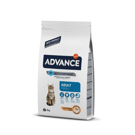 כבר למעלה מ-25 שנה, Advance מוקדש למחקר ופיתוח של תזונה איכותית המסייעתלבריאות החתול, בשיתוף עם מרכזי מחקר ואוניברסיטאות בינלאומיות.נוסחת ה-ACTIVE DEFENSE שלנו מסייעת למנגנוני ההגנה הטבעיים של החתול שלך,הודות למרכיבים המוכחים מדעית המרכיבים אותה: פרה-ביוטיקה, סיבים ואימונוגלובולינים, המסייעים למיקרוביוטה בריאה במערכת העיכול.פרה-ביוטיקה – להזנת החיידקים המועילים ולחיזוק מחסום ההגנה הטבעי של המעיסיבים ממקור טבעי – מסייעים לעיכול בריאבנוסף, המתכונים שלנו עושיים מרכיבים איכותיים, ללא חומרים משמרים או חומרי צבע מלאכותיים, כדי להבטיח תזונה טובה- הודו, סלמון או עוף כמרכיב ראשון- שימוש באורז ודגנים מלאים- חלבון וסיבים ממקור טבעי – אפונה ופולפת סלק