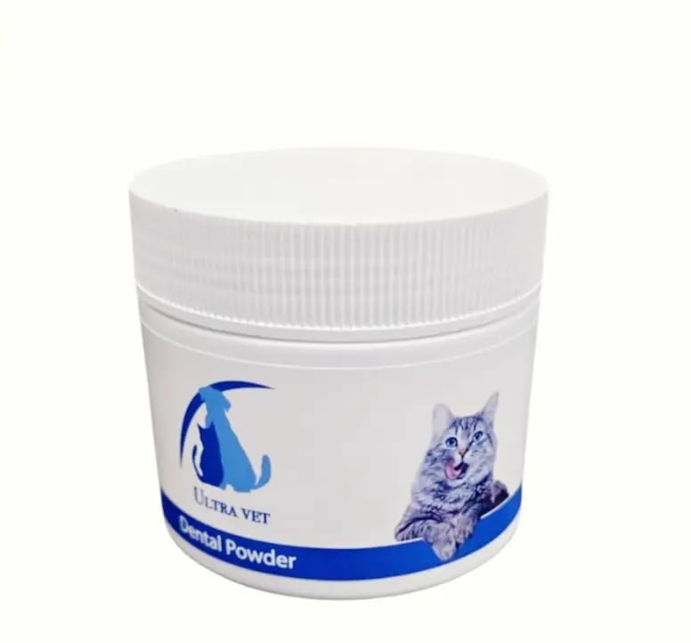 ULTRA VET DENTAL POWDER אבקה דנטלית לחתולים הפתרון המושלם לשמירה על בריאות הפה והשיניים לחתול שלך בקלות, ולהפחתת ריח רע מהפה.