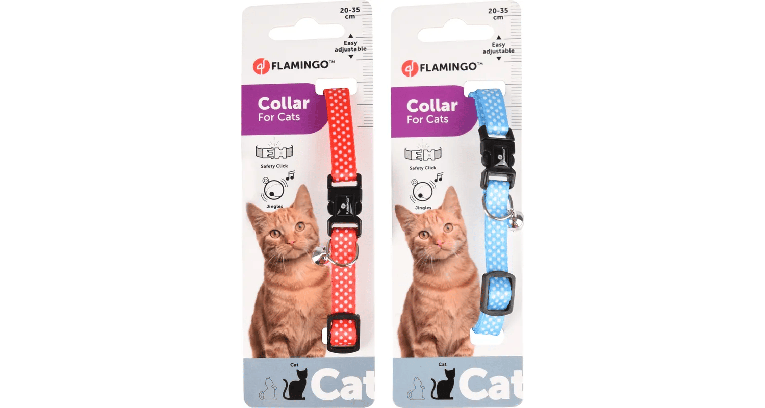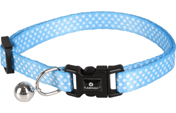 קולר חתול של Aiwa עם הדפס נקודות הוא פשוט מושלם! זמין ב-2 צבעים. חומר: ניילון מתכוונן אבזם קליק עם קליק בטיחותי עם פעמון חתול