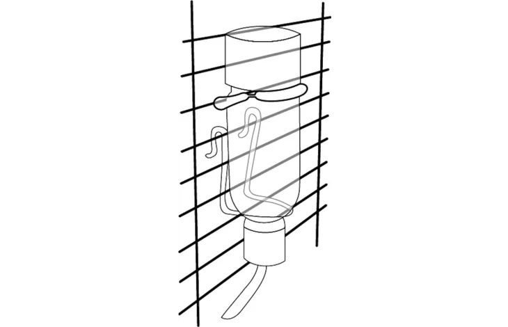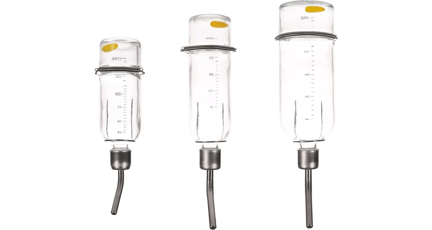 בקבוק מים קטן מזכוכית למכרסמים. קל להצמד לכלוב ומושלם עבור שרקנים, אוגרים ומכרסמים קטנים אחרים.