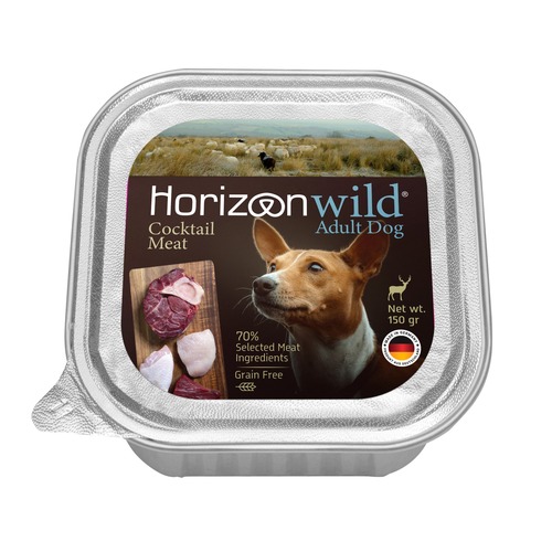 הורייזן שימורי מזון מלא ומאוזן לכלב בוגר – קוקטייל בשר . הורייזן ווילד פותח כפתרון המושלם לצרכים התזונתיים של כלבים בוגרים.