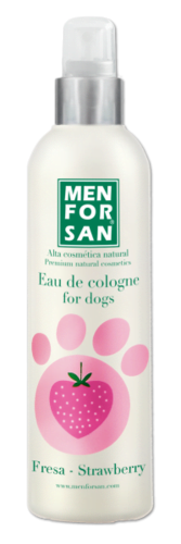 מן פור סאן בושם לכלב בניחוח תות. מספק ריח נעים לפרוות הכלב. אינו מכיל אלכוהול. בעל PH טבעי ולכן מונע כל בעיה בפרוות בעל החיים.