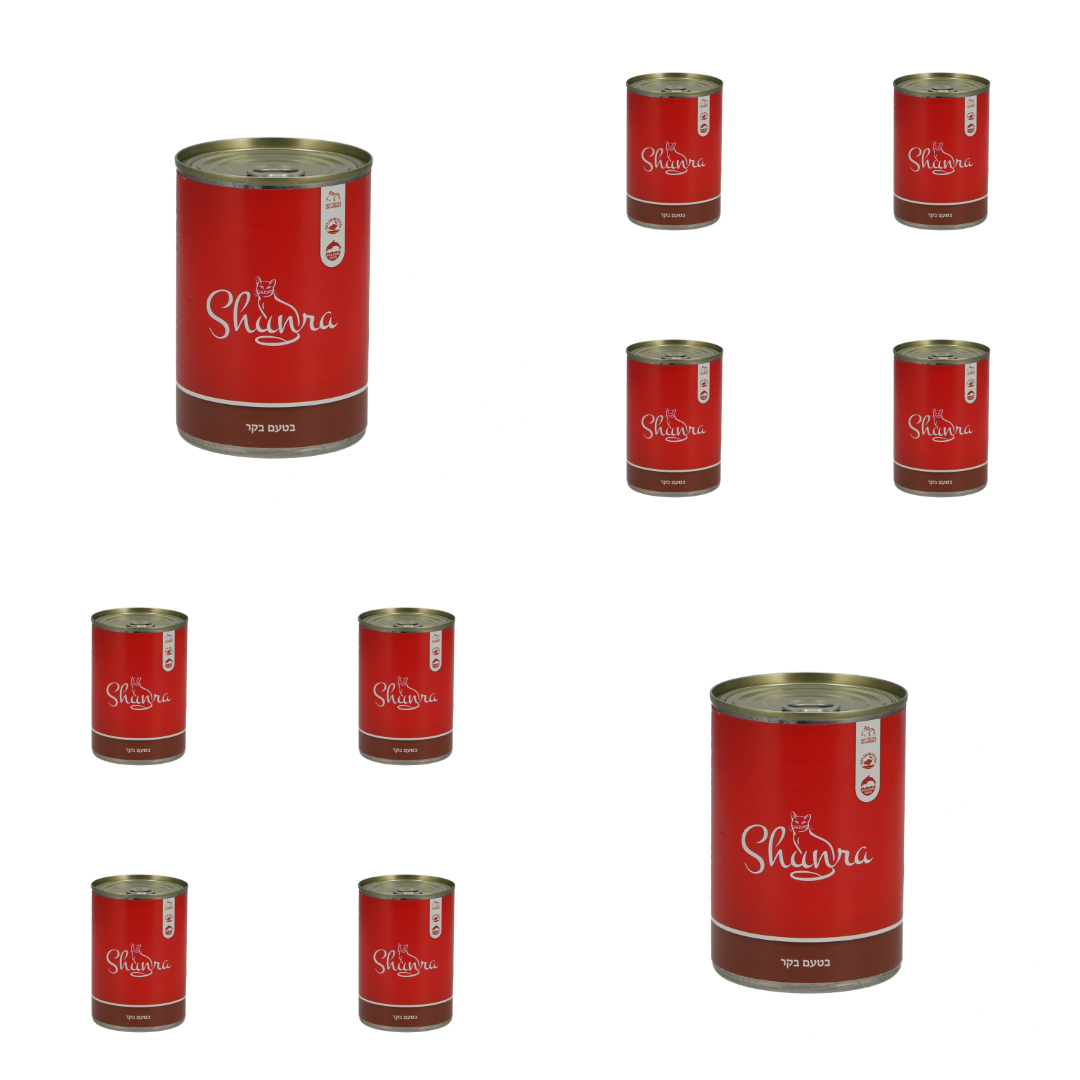 SHUNRA שונרא – שימורי מזון רטוב לחתולים עם נתחים בטעם בקר.