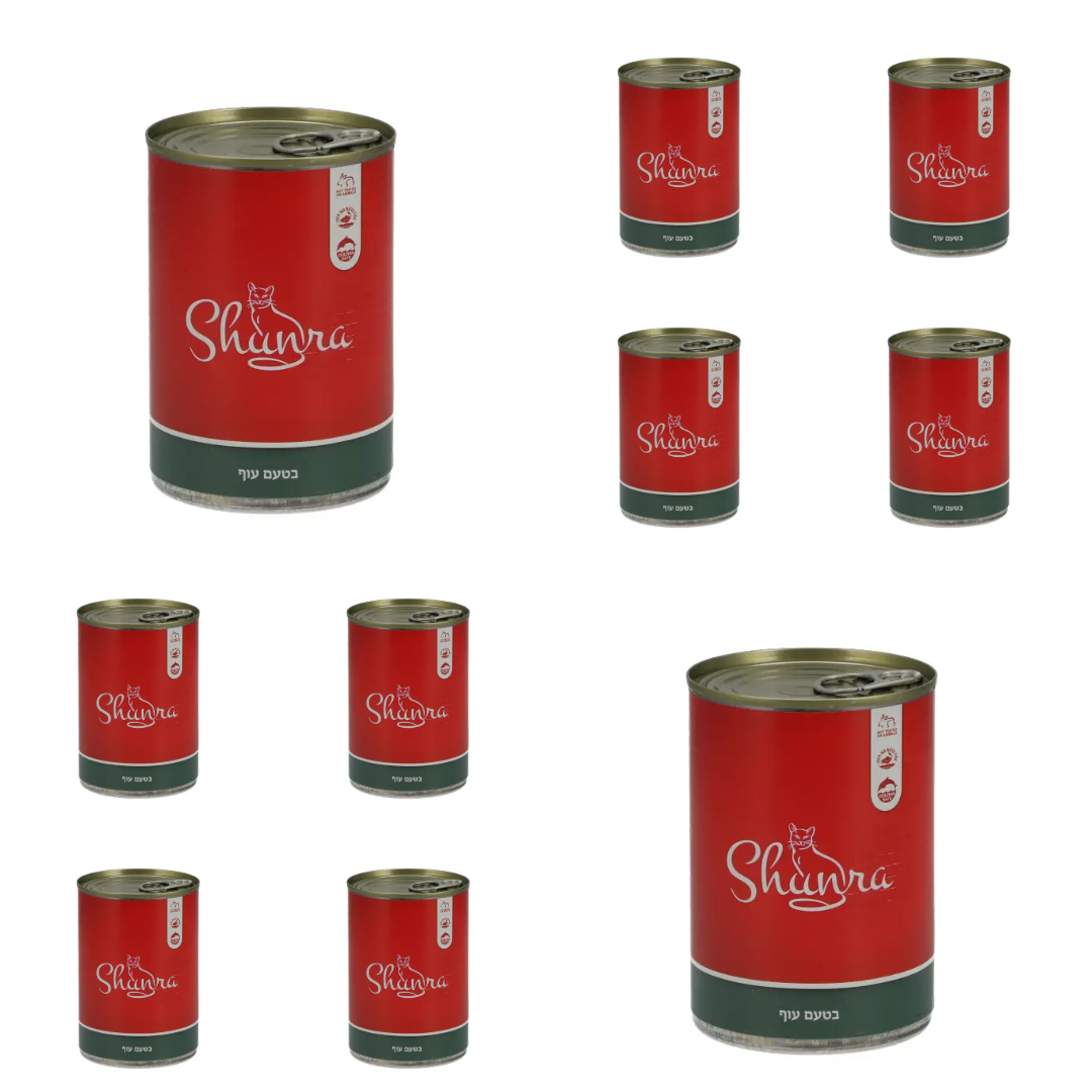 SHUNRA שונרא – שימורי מזון רטוב לחתולים עם נתחים בטעם עוף.