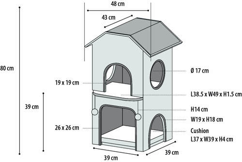 וילת פלמינגו נורדית נראית כמו ארמון קטן לחתולים! עם מספר קומות וכניסות, בתוספת שני מקומות מנוחה נעימים וכדורי משחק להנאה נוספת. מושלם עבור החבר הפרוותי שלכם!