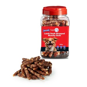 חטיף פינוק לכלב מקלוני מאנצ’י מצופים כבש מופחת שומן, עשיר בחלבון וקל לעיכול. מקור בריא לאומגה 3 וחומצות שומן חיוניות. מספק אנרגיה ומעולה כחטיף אילוף. רכיבים טבעיים בלבד. צנצנת איכותית המכילה 550 גרם.