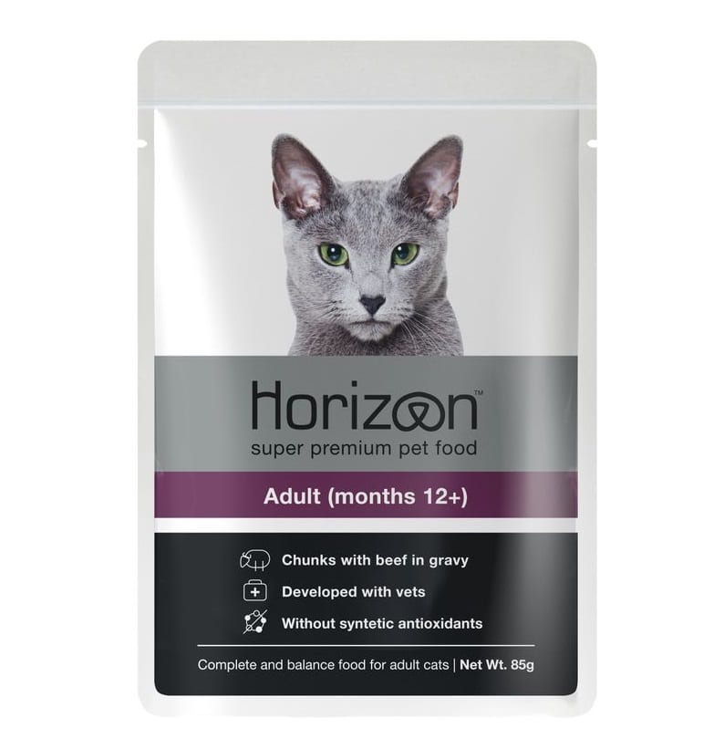 פאוץ הורייזן בקר ברוטב מזון מלא ומאוזן לחתול בוגר תוצרת גרמניה.