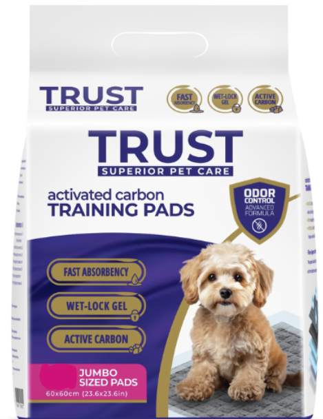 פדים לאימון כלבים עם קרבון של חברת Trust הם הפתרון האידיאלי לאילוף כלבים לעשיית צרכים בבית. כל מארז מכיל 50 פדים בגודל 60×60 ס”מ, המספקים ספיגה מקסימלית ונטרול ריחות לא נעימים בזכות השכבות המתקדמות שלהם.