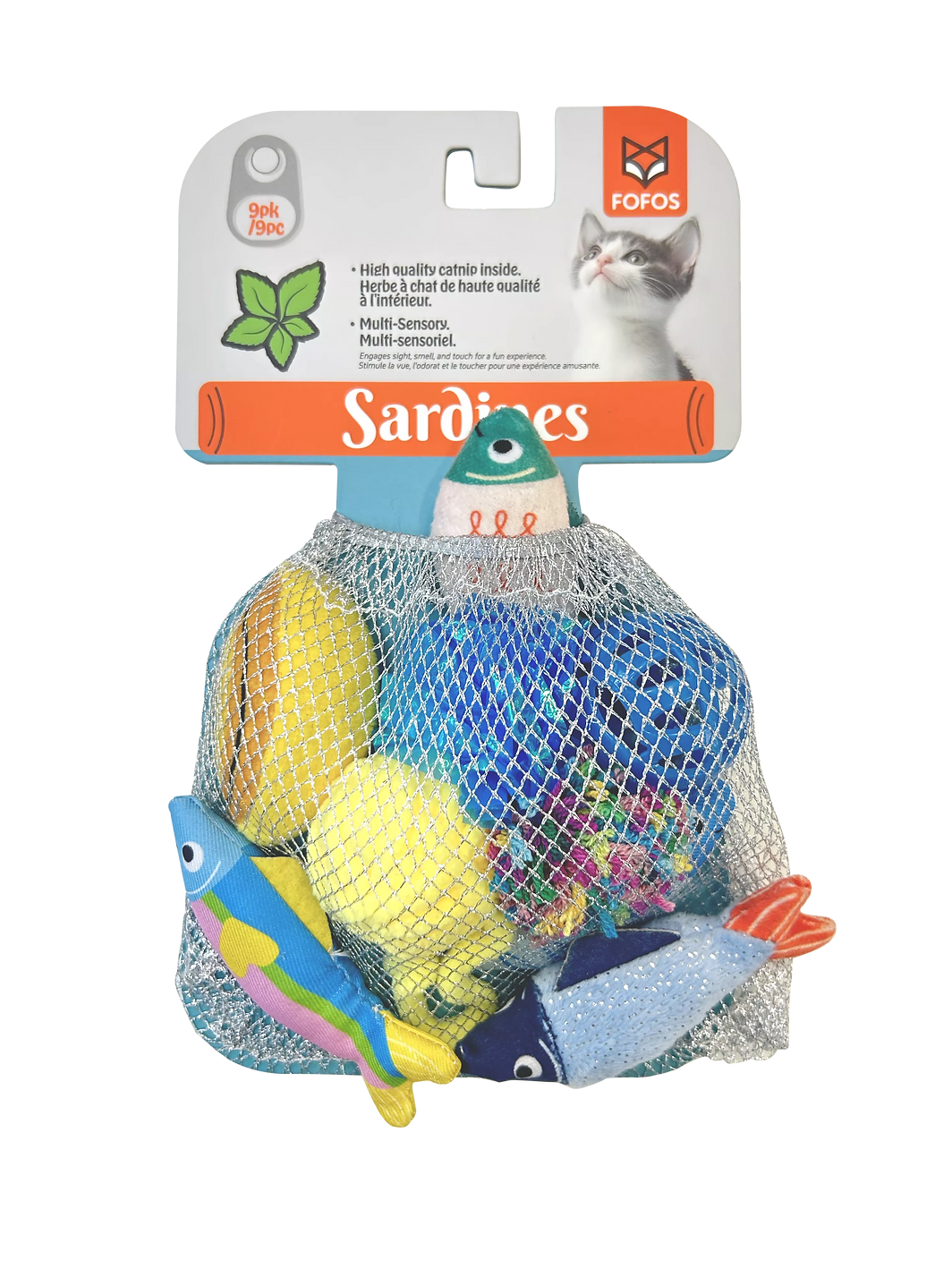 FOFOS Sardine Cat Toy 9 Pack הוא מארז איכותי ומשתלם במיוחד, שנועד להעניק לחתולים חוויית משחק עשירה, מגוונת ומלאת עניין לאורך זמן.