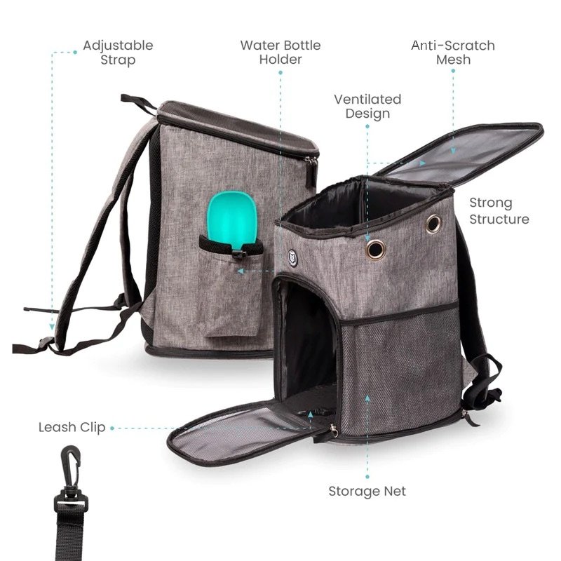 לתחתית יש בסיס נשלף מרופד רך עם כיסוי הניתן לכביסה במכונה נוחות ואבטחה: מבנה יציב עם מוטות ברזל זיכרון, תפס רצועה מתכת בפנים כדי למנוע מחיות מחמד לקפוץ החוצה. כיס רוכסן גדול למזון, צעצועים, פינוקים, בקבוקי מים וכו’ וכיס רוכסן צדדי לאחסון נוסף עיצוב נוח: לתרמיל מנשא לחיות מחמד זה רצועות יציבות המאפשרות נשיאת יד, כתף או מזוודה בתוספת רוכסנים עמידים. הוא נפתח מלמעלה ומשני הצדדים. המבנה המתקפל הכולל מסייע באחסון ובנסיעות קלות.