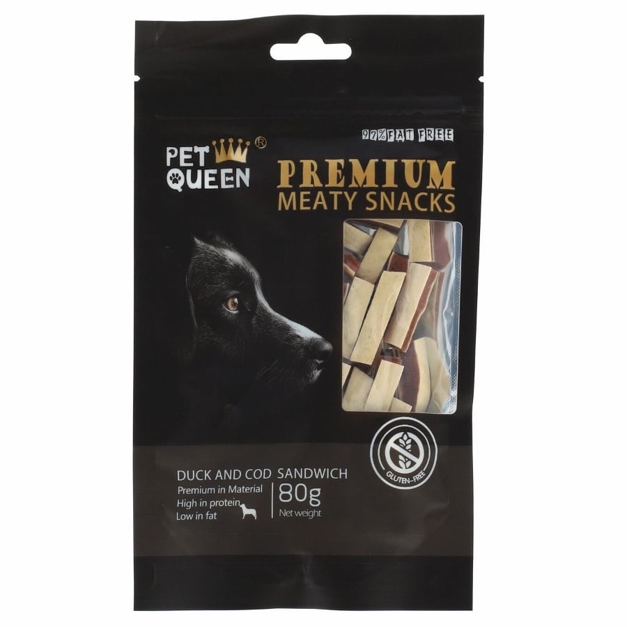 פט קווין פט קווין סנדוויץ’ ברווז ודג בקלה , חטיף משלים רך לכלבים. עשוי מרכיבים מובחרים. עשיר בחלבון ומופחת שומן. מתאים לאילוף, תעסוקה או כפינוק טעים. אינו מכיל צבעי מאכל וחומרים משמרים.