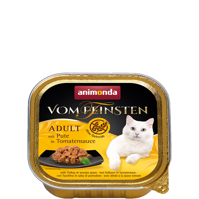 Vom Feinsten הודו ברוטב עגבניות גורמה. עם מרכיביי בשר נבחרים. ללא דגן,ללא סויה. עם טאורין טבעי. אין צבעים מלאכותיים, אין חומרים משמרים.