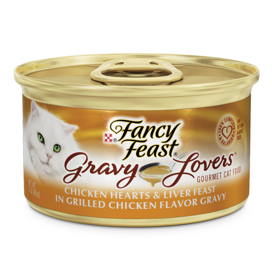 Fancy Feast לבבות עוף וכבד ברוטב עשיר, מזון לח המעניק לחתולים 100% תזונה מלאה ומאוזנת לצד ארוחת גורמה במרקם עשיר ומפנק במיוחד, כמו שחתולים אניני טעם אוהבים! מכיל ריכוז חלבון גבוה מזון לח טעים במיוחד