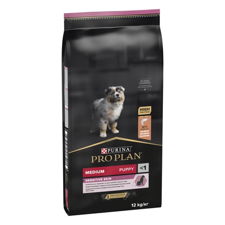 פרו פלאן OPTI DERMA, מזון יבש המותאם לטיפול ברגישויות עור ולטיפוח פרווה בריאה ומבריקה אצל גורים מגזעים בינוניים. מכיל חלבון סלמון עדין, המותאם לעזור לכלבים בעלי רגישות למרכיבי מזון מסוימים, בייחוד כאשר מדובר בכאלה המבוססים על חלבון עוף. תהליך הבישול הייחודי והמוגן בפטנט של הסלמון, משמר את איכות הרכיבים וערכיהם התזונתיים.