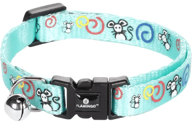 קולר לחתול בעיצוב טורקיז עם עכברים🐱, מתכוונן למידות של 20-35 ס”מ. קולר מעוצב ואיכותי שמביא שילוב מושלם של סגנון ונוחות לחתול שלך. כולל מנגנון בטיחות למניעת הסתבכות.