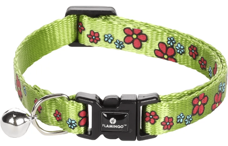 קולר לחתול בעיצוב ירוק עם הדפס פרחים🌸🐱, מתכוונן למידות של 20-35 ס”מ. קולר מעוצב ואיכותי שמביא שילוב מושלם של סגנון ונוחות לחתול שלך. כולל מנגנון בטיחות למניעת הסתבכות.
