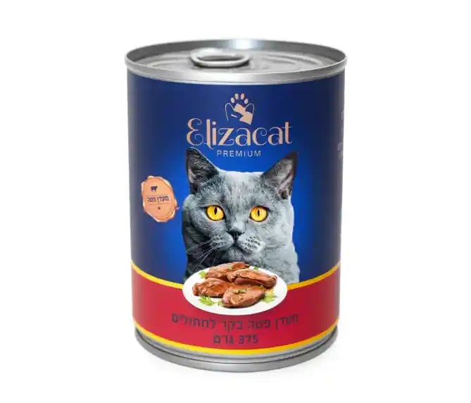 שימורי אליזקט פטה בקר הם מזון רטוב משלים ואיכותי לחתולים, המיוצר על ידי Elizacat Premium ומיועד לפינוק יומיומי ולגיוון התפריט. השימורים מכילים פטה בקר במרקם רך וחלק, בשילוב כבד עוף, ליצירת טעם עשיר ומפתה שגם חתולים בררנים נהנים ממנו.