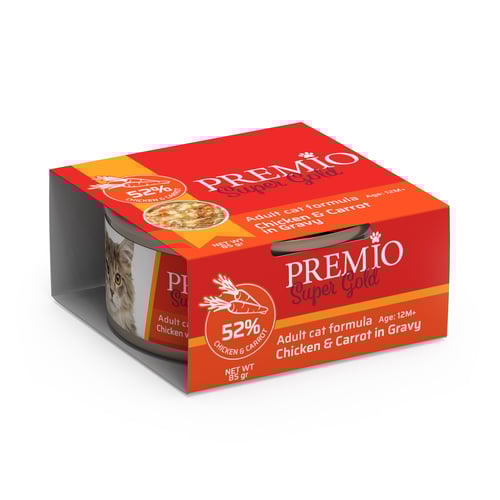 מעדן פרמיו סופר גולד מזון משלים לחתול בוגר עם כ60% עוף, אננס וגזר ברוטב