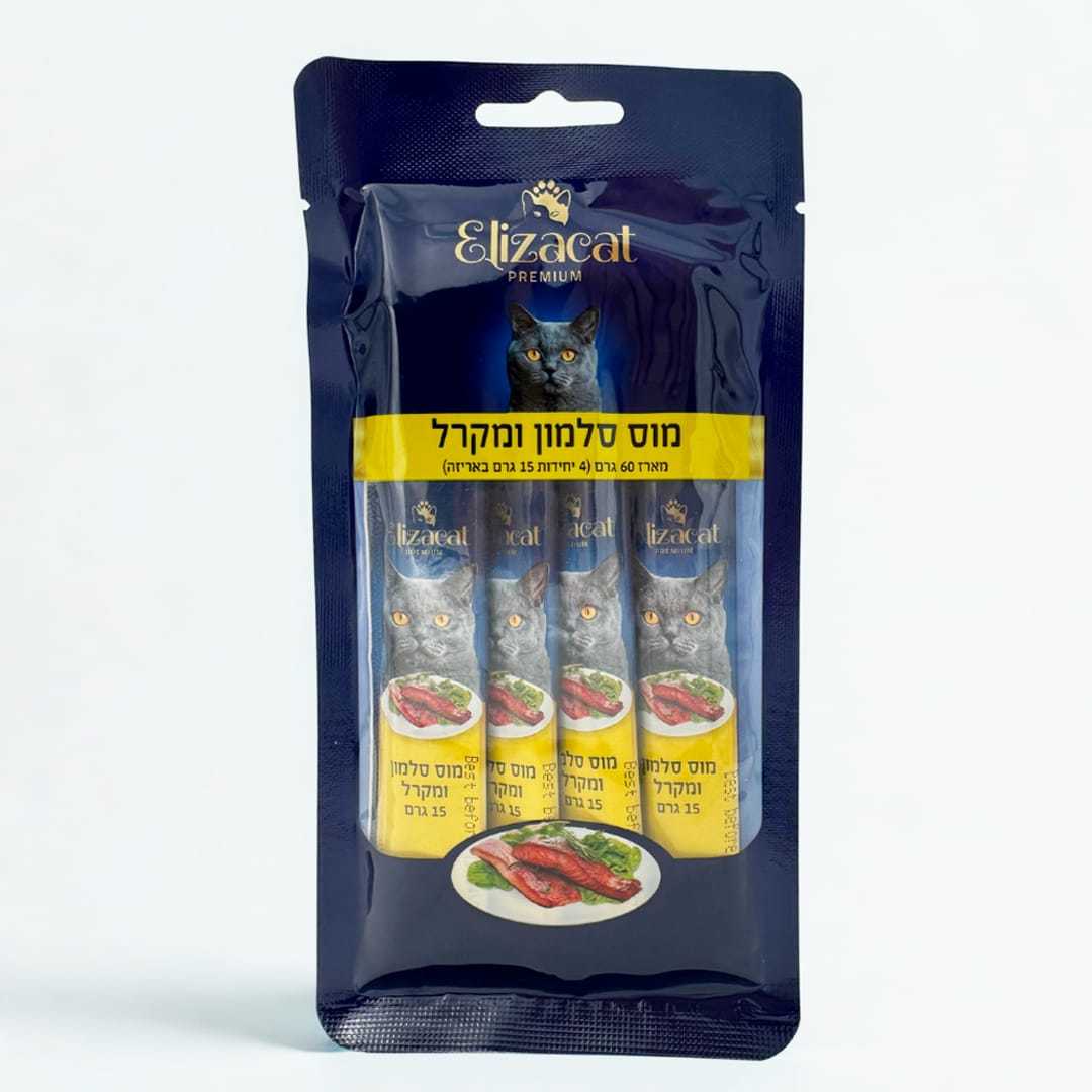 סלמון, מים, עוף, מקרל, הידרוליזט דגים, שמן זית, טאורין, ויטמין A, ויטמין D3, ויטמין E.