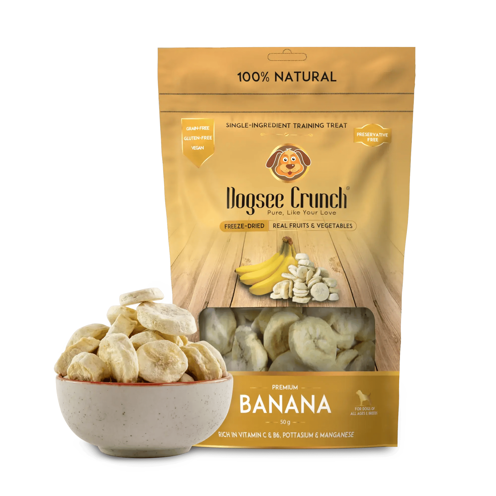 דוגסיי קראנץ’ בננה הוא חטיף אילוף המכיל מרכיב אחד, העשוי מבננה אמיתית בלבד. חטיפים אלה עשירים בסיבים תזונתיים המסייעים בחיזוק המערכת החיסונית של הכלב שלכם ובשמירה על מערכת עיכול בריאה. חטיפים אלה, ללא גלוטן, עמוסים בוויטמינים ומינרלים, מה שהופך אותם למושלמים לאילוף.